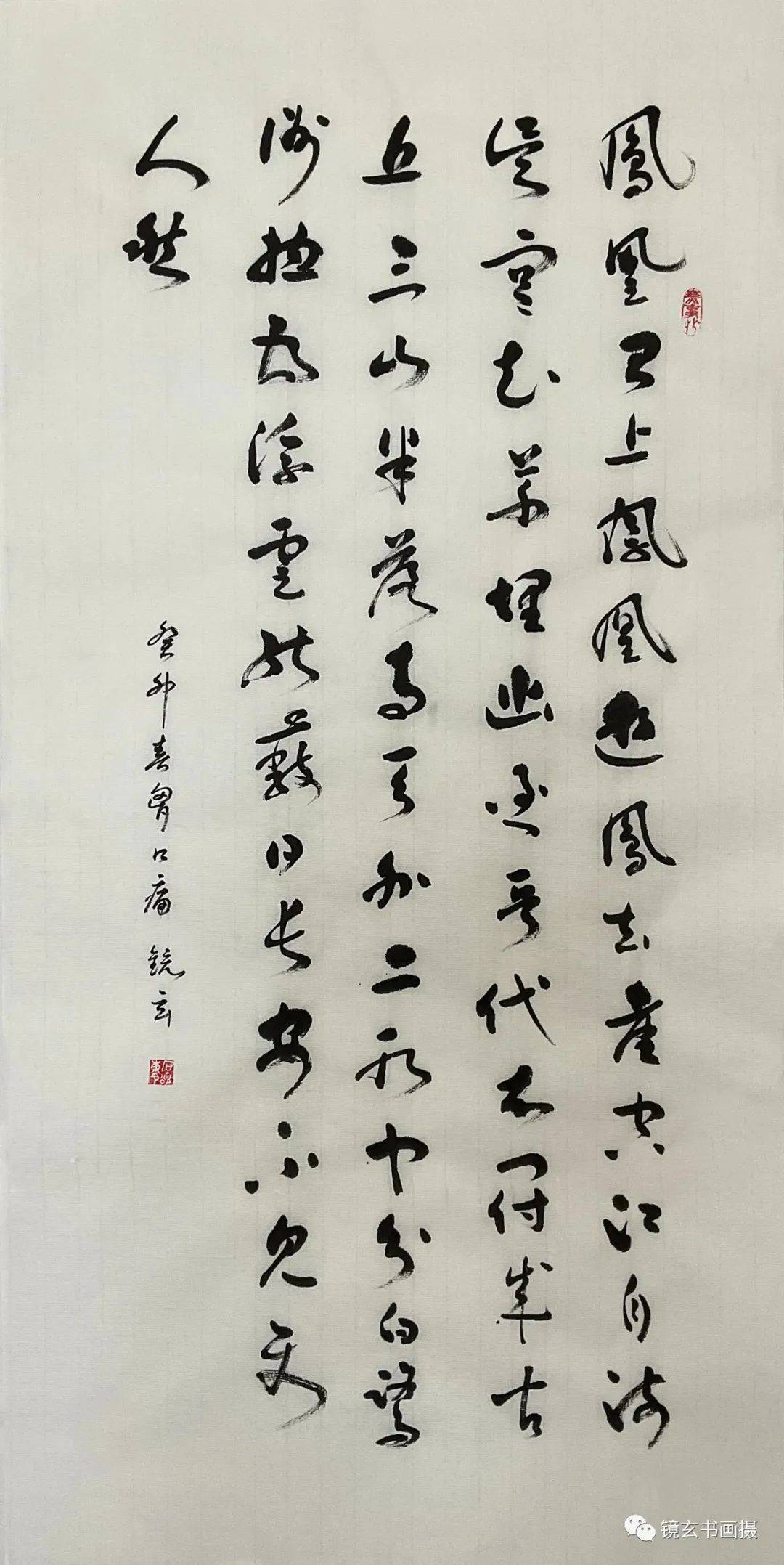 四尺四开 壬寅壬子月健康浩劫,癸卯春仍遗胸痛不止,白细胞总不够用,墨薄神散提笔维艰。 登金陵凤凰台 【唐】李白 凤凰台上凤凰游,凤去台空江自流。 吴宫花草埋幽径,晋代衣冠成古丘。 三山半落青天外,二水中分白鹭洲。 总为浮云能蔽日,长安不见使人愁。 彩铅画像定制: 1、赞赏支付800元; 2、请发送清晰的肖像照片给公众号“镜玄书画摄”; 3、授权“镜玄书画摄”所有者可以使用和公开发表您发来的照片和根据照片绘制的画像。 4、绘制周期:收到您的照片后的四周左右。 5、画像在发表前会先发到您本人微信。由于公众号后台限制,超过48小时腾讯就不让镜玄回复朋友们发来的消息了,所以还请添加镜玄的私人微信:kingxuan166(请注明画像),以便像画好后能及时发给朋友们。 6、画像只给您发送画像电子版(包括彩色铅笔稿一张和润色完成稿一张),不提供纸质画稿。 油画定制: 100万元起,最短绘制周期24个月。 书法定制: 润笔:5万元/平尺 其实只是为了堵上要字、要画的人们的嘴!